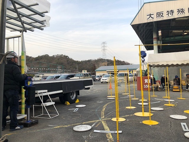 黄色のポールに当たったり、揺れが大きい、巻き上げすぎとかいろいろ原点項目があり、持ち点100点で減点方式で70点以上が合格です。