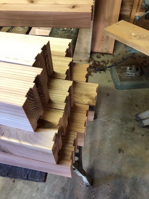 ログハウスのバルコニーに屋根をかける仕事があるのですが、その腕木の加工です。