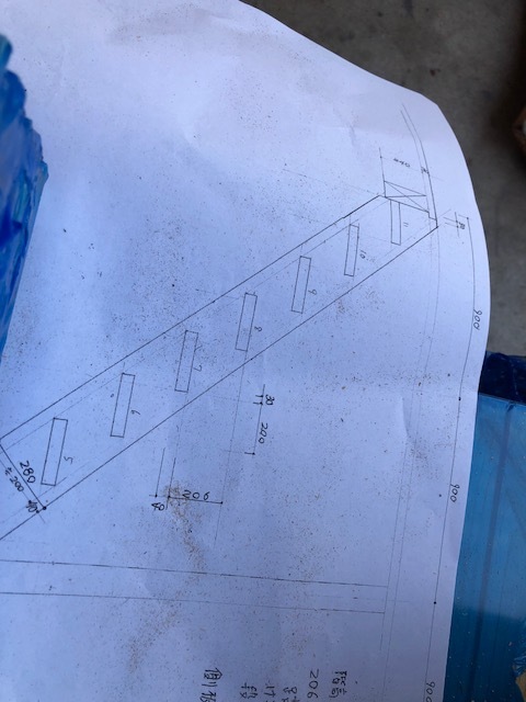 画像の向きがおかしいですが、階段の図面をみて材料出しです。