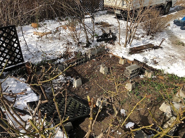 工事期間の間、鹿が入らないように廃材で簡易フェンスを作っておきました。