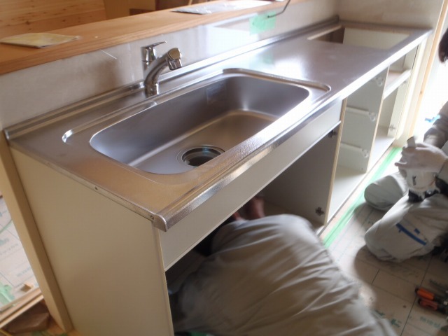 さて、今日はキッチンの施工日でありました。
